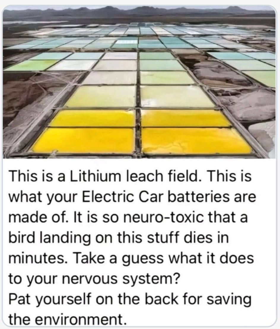 Not to mention the electromagnetic fields measured in EVs are off the charts, and carcinogenic. Have you heard of Katie Singer's work on tech use/ environmental impacts?