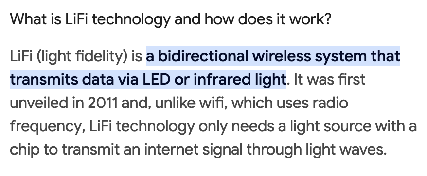 LiFi utilizes light as a frequency carrier, similar to how we use 3G, 4G, and 5G, but without the harmful radiation associated with those technologies.