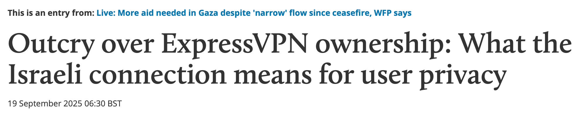 By simply downloading and installing an Israeli-owned VPN like ExpressVPN, Israeli entities can access data on your device or monitor your online activities. As mentioned earlier, this is due to the close ties of the VPN ownership (Kape Technologies) to Israeli military intelligence units, and past evidence suggesting capabilities for massive surveillance and data harvesting linked to such networks.