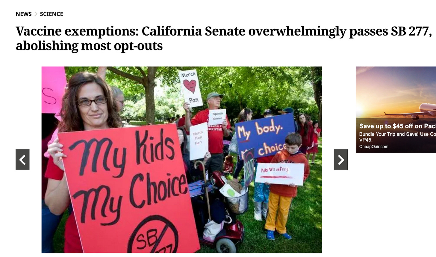 Remember the epic vaccine exemption battle; California's SB 277? Or the vaccine battles in Oregon that I covered in my aforementioned Substack? It's always the same playbook: create hysteria by declaring an "outbreak" (never mind that an outbreak can be as little as three confirmed cases in a zip code), blame the unvaccinated by vilifying "anti-vaxxers," Mennonites, or anyone who dares question the narrative, and then push legislation to ram through bills that eliminate vaccine exemptions, paving the way for forced mandates. And who benefits? Big Pharma, of course.