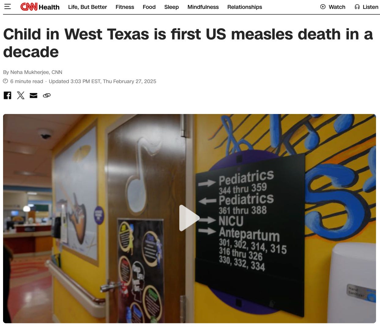 The recent death of a child in Texas, initially attributed to measles, is heartbreaking. I can’t imagine what the parents are going through.