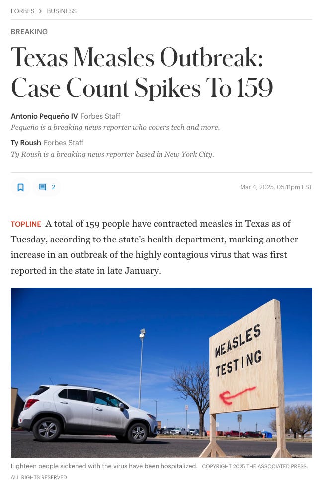 The recent measles situation in Texas is a prime example. As Dr. Ealy explained, this "outbreak" conveniently coincides with tomorrow's nomination of Dr. Jay Bhattacharya as NIH Director.