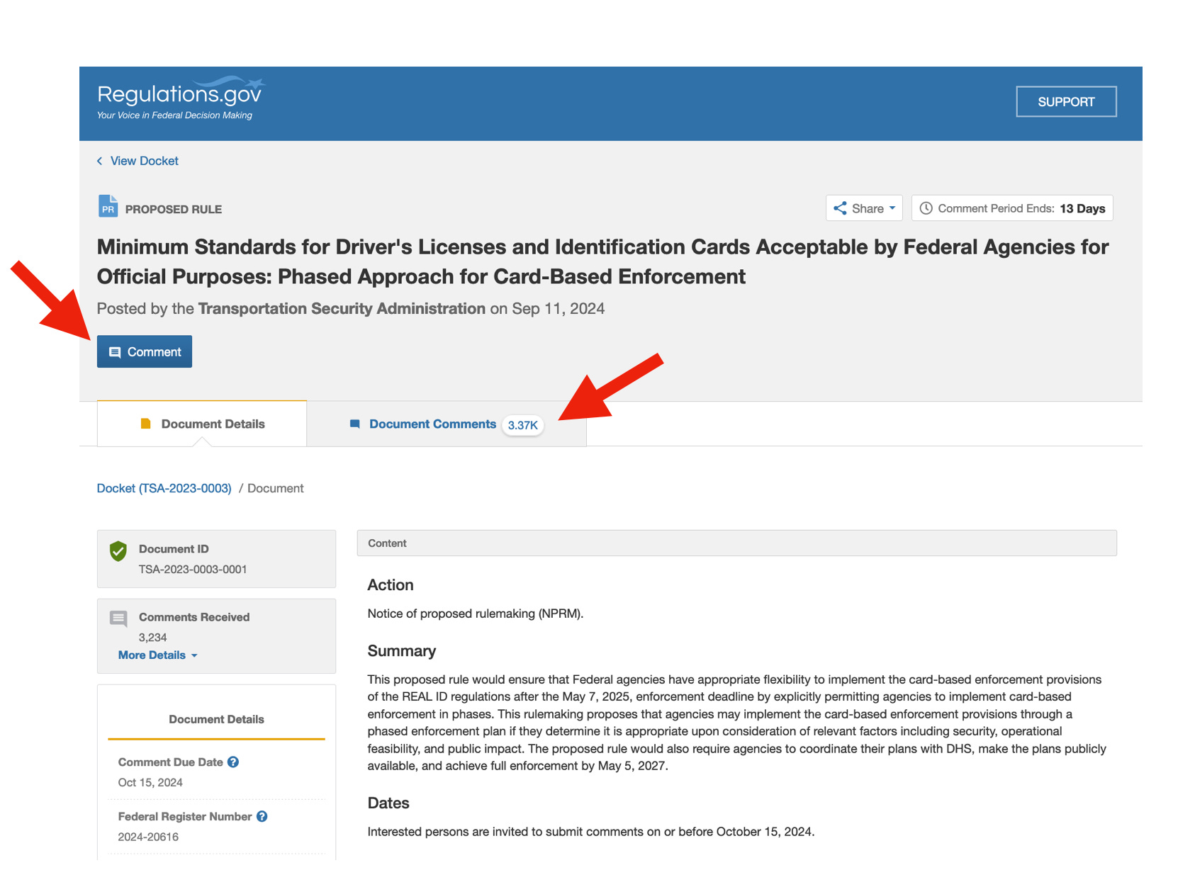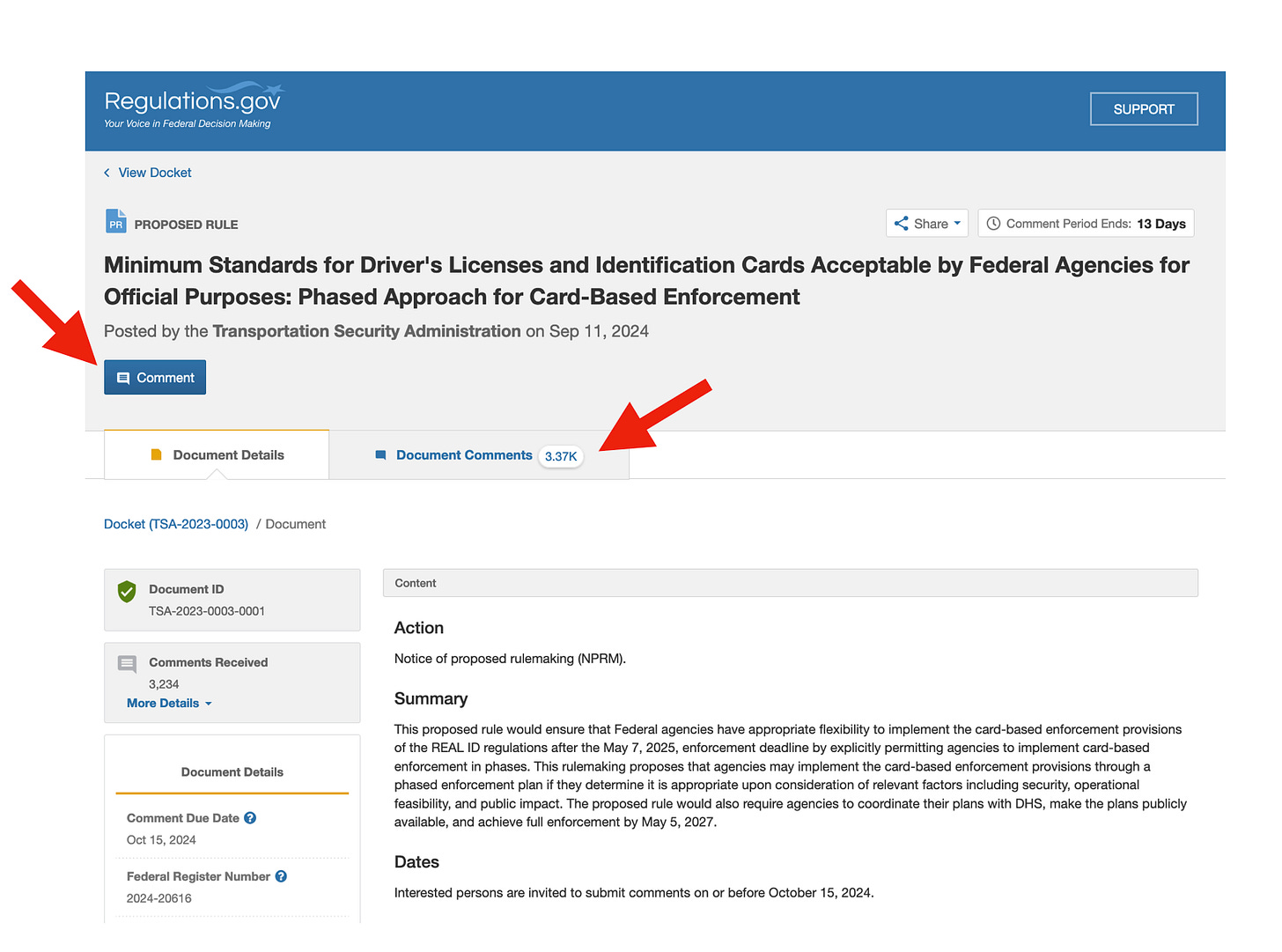 Click the link below, then once on the Reulations.gov page, click “Document Comments” on the right to see the nearly 4,000 comments to date; then, to add your own comment, click the “Comment” button to the left: https://www.regulations.gov/document/TSA-2023-0003-0001.