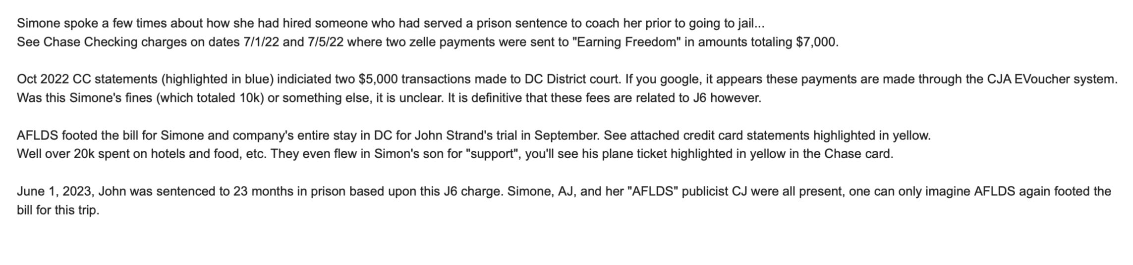 I don’t think AFLDS donors intended their donations to go towards Strand’s January 6th court case. Not only did Gold use AFLDS funds to pay for their DC court escapade, but….