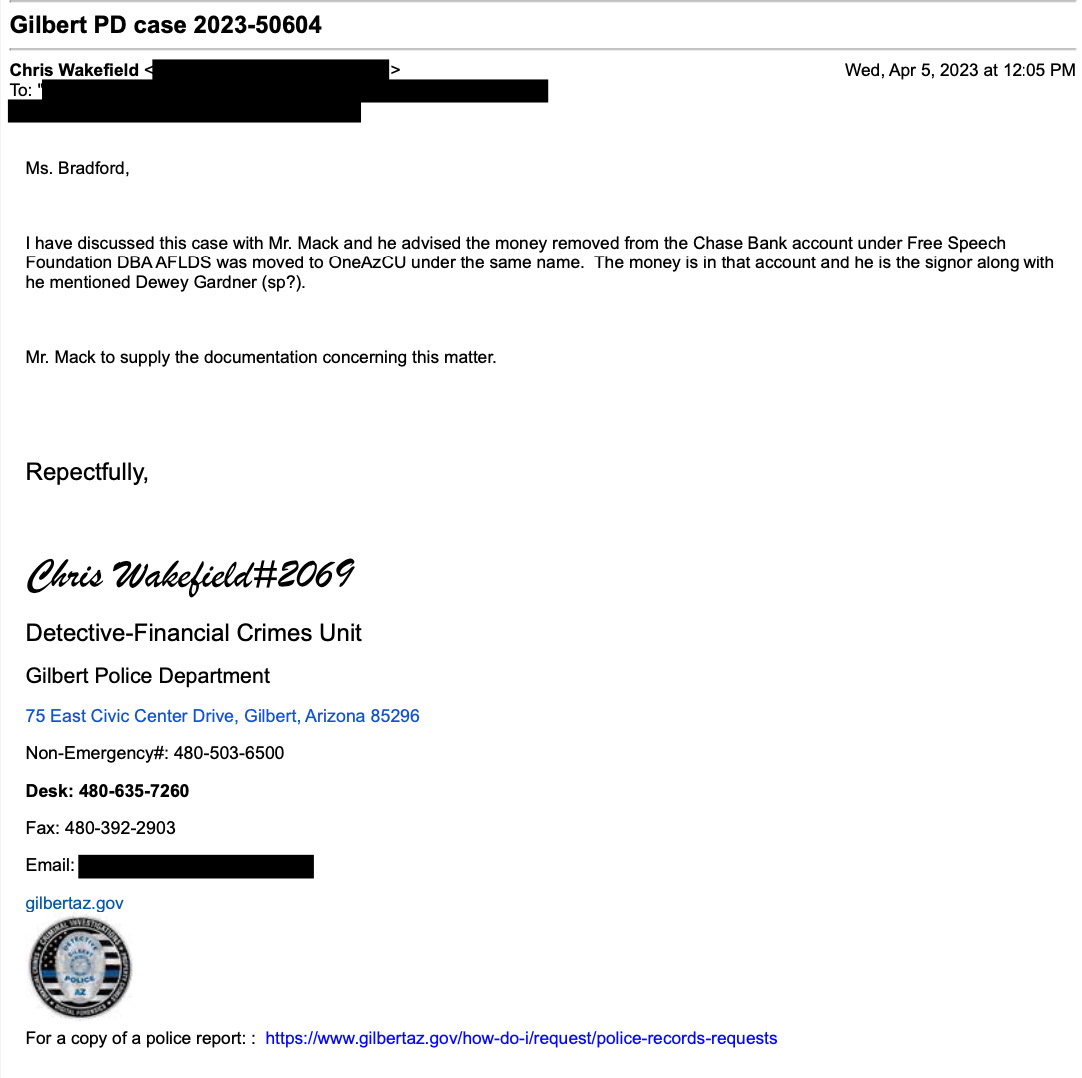 Mack continues to claim he committed no crime and demands that I and others “show him the (police) charges.” However, he is oblivious that we know the Gilbert police landed on his doorstep a few weeks ago and gave him an ultimatum; tell us where the money is, or we have to arrest you.