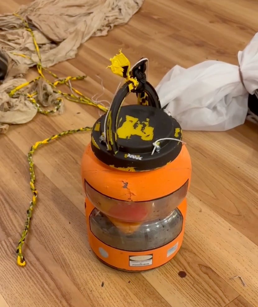 The capsule itself is a sight to behold. Covered in stickers and caution tape that somehow braided itself during the descent (Mother Nature's got some crafting skills, it seems), it's a testament to the DIY spirit of the little Washington community. And let's not forget the touching tributes to their dearly departed friends whose photos also made the journey.