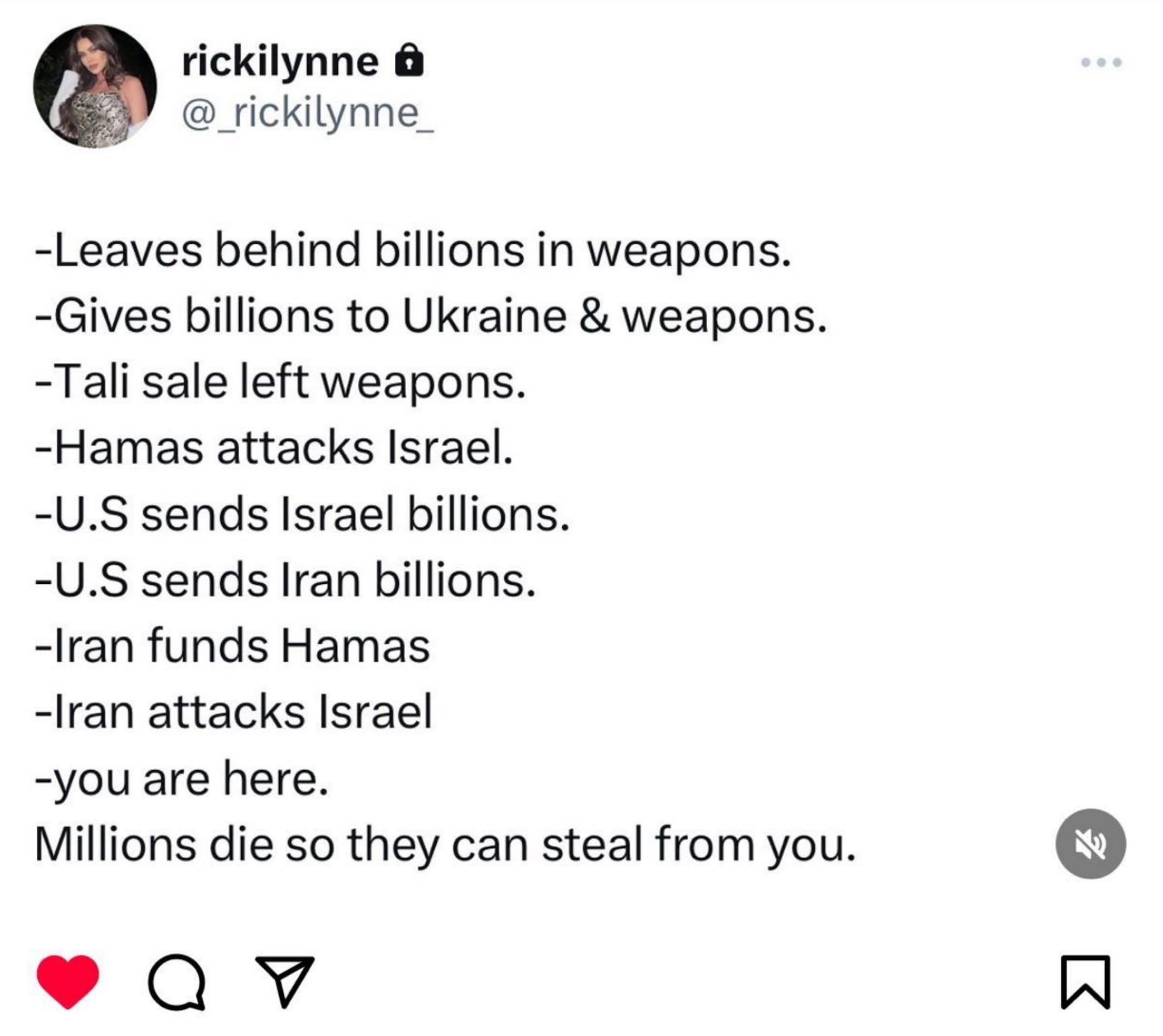 I am glad that Biden, er O'Maggot is not going to strike at Iran. I believe the entire circus of Oct was orchestrated by Israel itself. One of my favorite authors, and commentators is David Icke. He thinks the things being done to the Palestinians is heinous. So do I. And yes, these psychos want WW3. If you want to know the culpirits, try calling them out and exposing them without being hauled off to a reeducation camp, or worse.