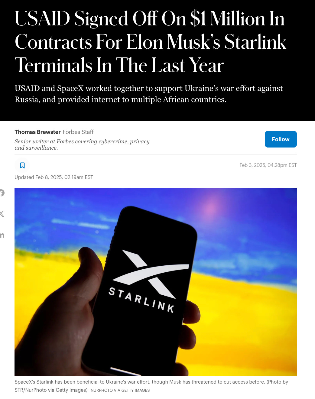 Elon Musk's Starlink, often touted as a purely private venture, has quietly benefited from significant USAID funding. Forbes unearthed federal contract records showing that USAID has spent $1 million on Starlink terminals over the last four years, aiding the company's expansion into Zimbabwe and South Africa.