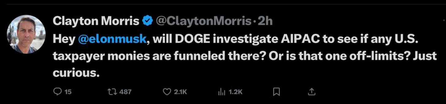 It’s time Americans start voting out all AIPAC recipients in Washington, as well as those holding dual citizenship.