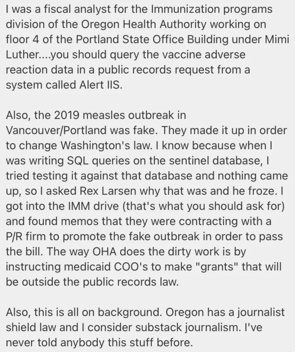 J.B. Handley confirmed that this whistleblower did, indeed, work for the Oregon Health Authority.