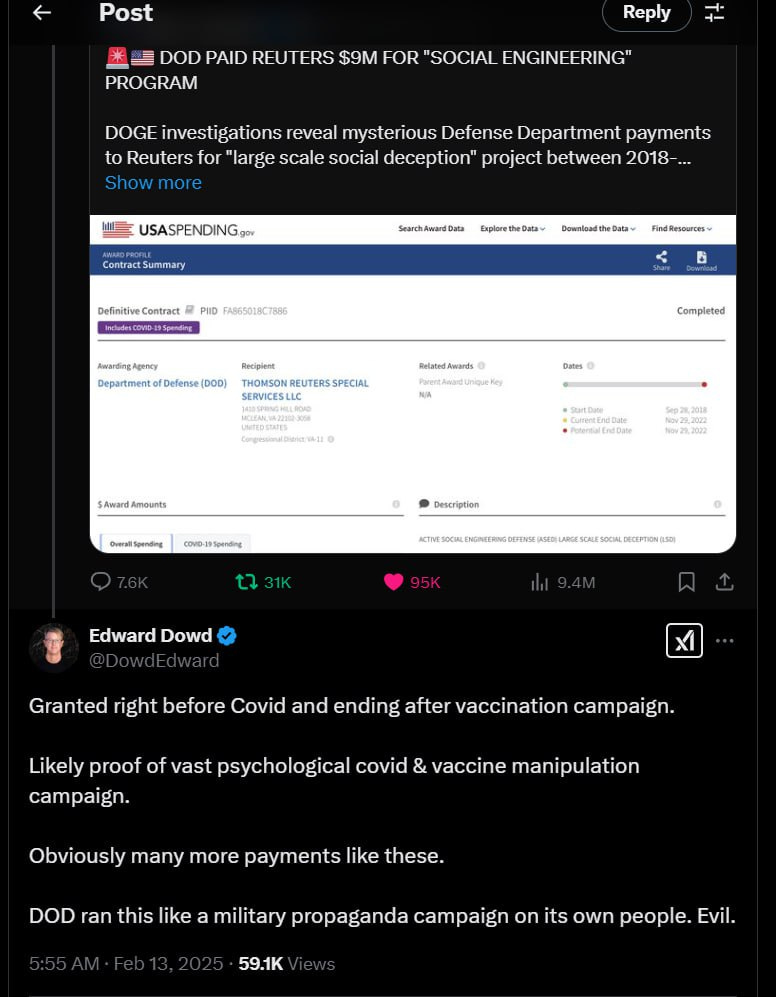 DOGE, as well, has now proven this tactic was all by design and involving the DOD and media, via USAID.