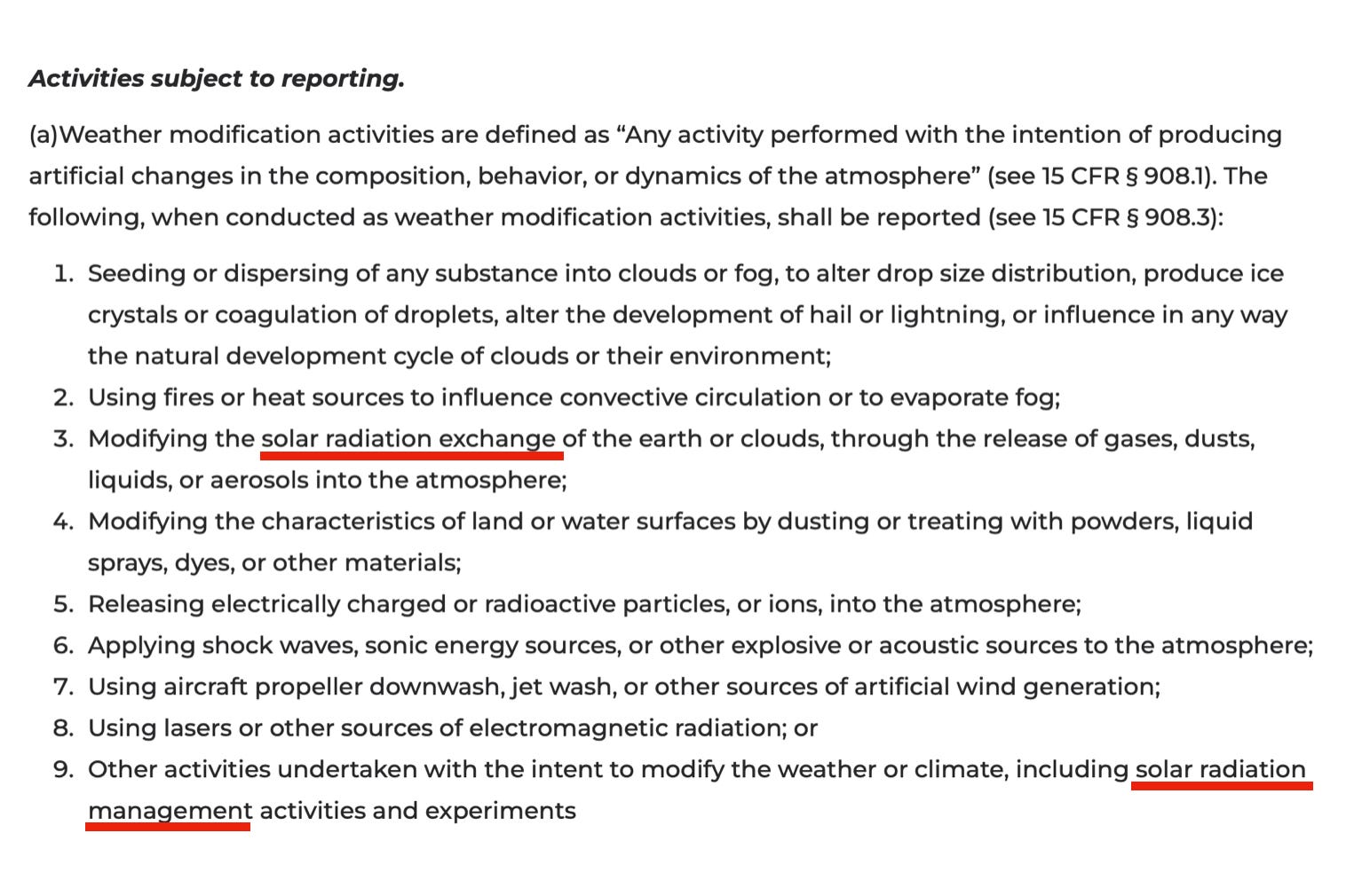 This is what NOAA currently has on their website under “weather modification” programs (funny how they have already added SRM to the page before public comments officially closed - they must think nobody is watching). Simply having this reporting system in place is giving tacit permission by our government for our weather to be modified, our sun to be blocked, and heavy metals to rain down on us without our knowledge, consent, or any transparency.